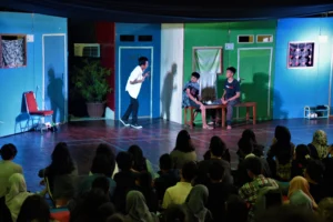 Dengan segala keterbatasaanya, Teater cahaya mampu menyulap ruangan olahraga dan properti yang sederhana menjadi sebuah ruang teater yang keren.