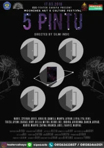 Kali ini Teater Cahaya Kembali mengadakan pertunjukan berjudul teater 5 Pintu. Pertunjukan ini merupakan pertunjukan tunggal pertama teater cahaya di sekolah sendiri yang diselenggarakan dalam kegiatan Festival Teater Cahaya (17/03/2018). Uniknya lagi, Festival ini diadakan berbarengan dengan Moonzhercup 8.